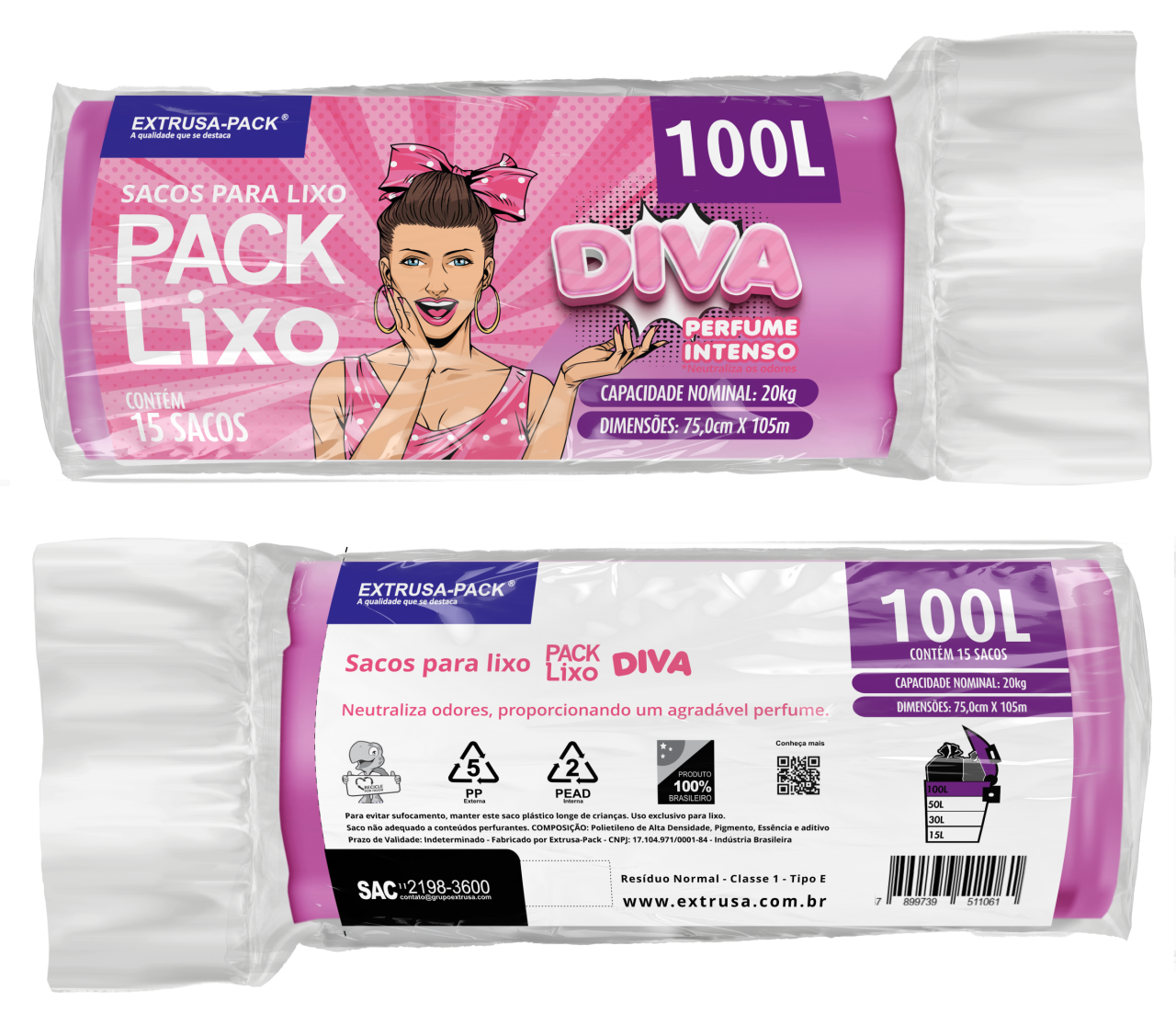 • PACK LIXO DIVA 100 LITROS 75X105 ROSA FD 10X15 UN