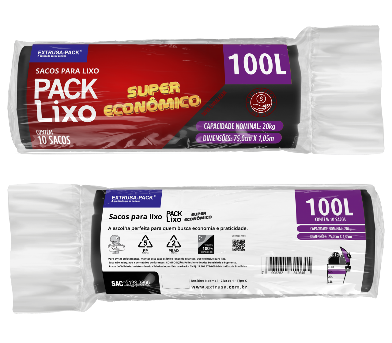 • PACK LIXO SUPER ECONOMICO 100 LITROS PRETO FarDo com 20 rolos (10 UN por rolo)