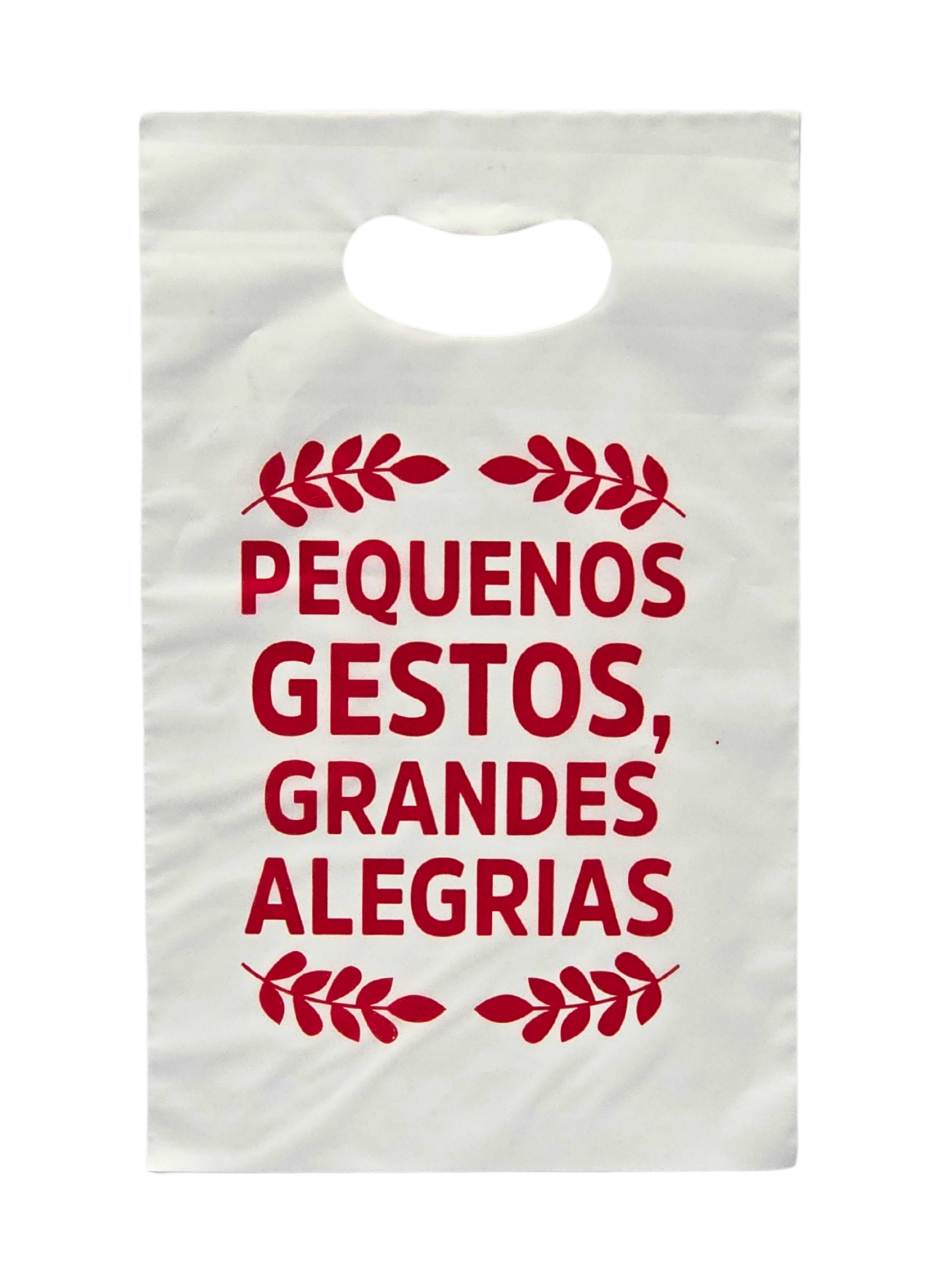 SACOLA PIGMENTADA 20 X 30 BRANCA IMP. MODELO ALEGRIA - FARDO COM 10 PACOTES (50 UND POR PACOTE)