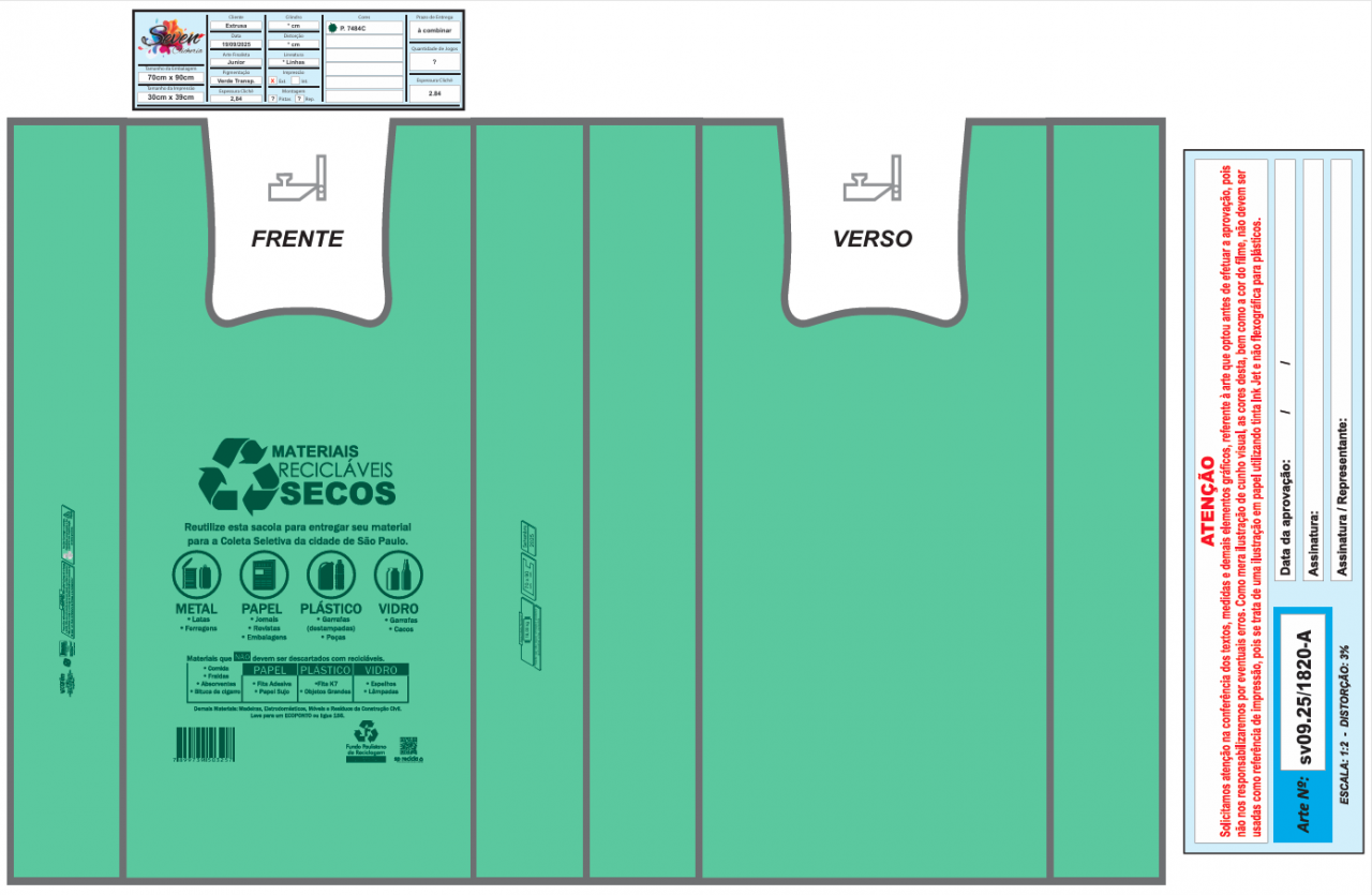 • SACOLA VERDE RECICLAVEL LEI SP 70X90 BIOPLASTICA - PACOTE 3.1KG